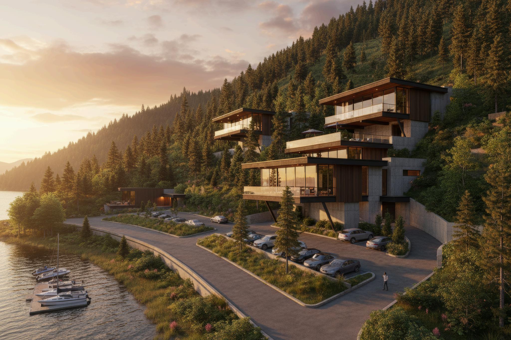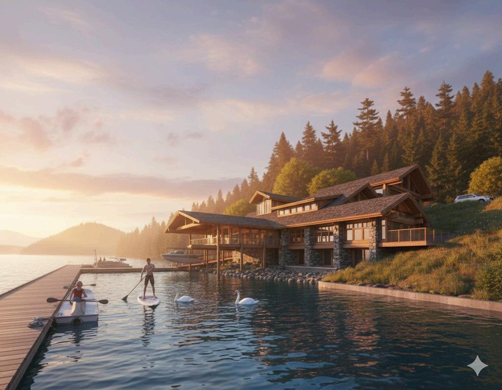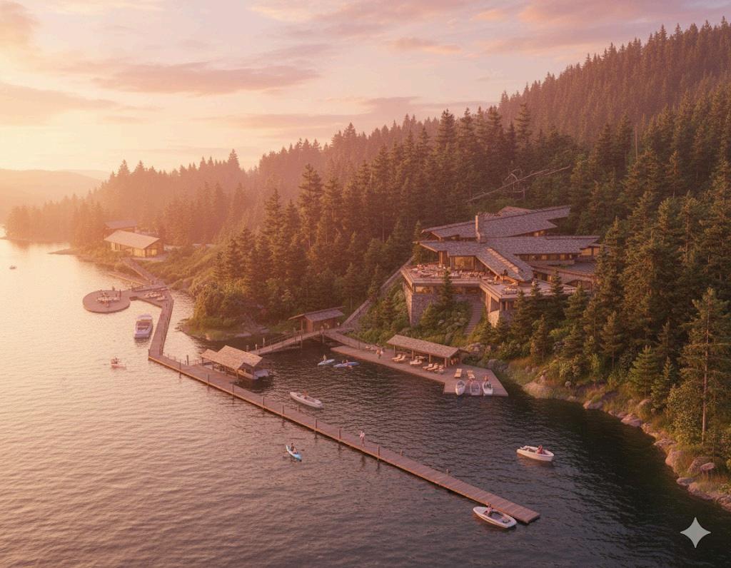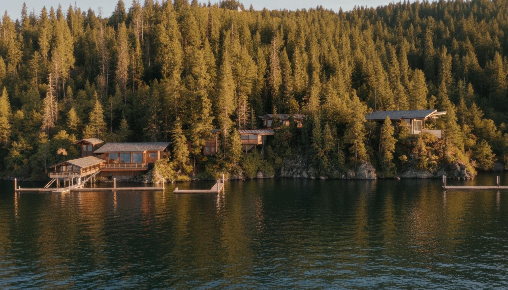 52pristineacreswithjustunder1,400feetofprimewaterfrontage. Positionedonanaturalshelfofforestandmeadow,thispropertyoffers breathtakingviewsacrossoneofthetopfivemostbeautifullakesinthe world.Oftencalledthe“RivieraofLakeCoeurd’Alene,”thesettingisboth sereneandworld-class,creatingacanvasforaremarkablevision.