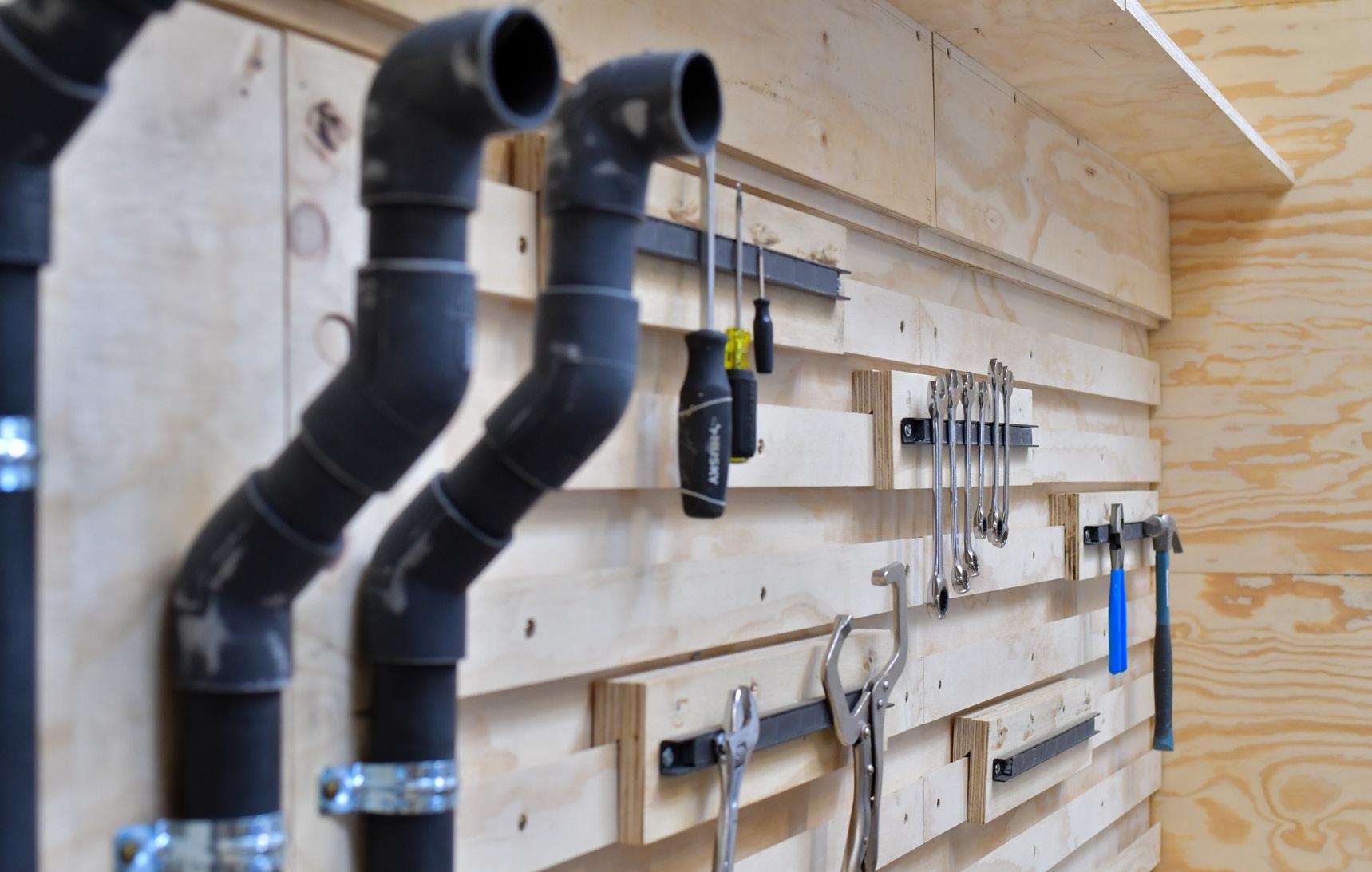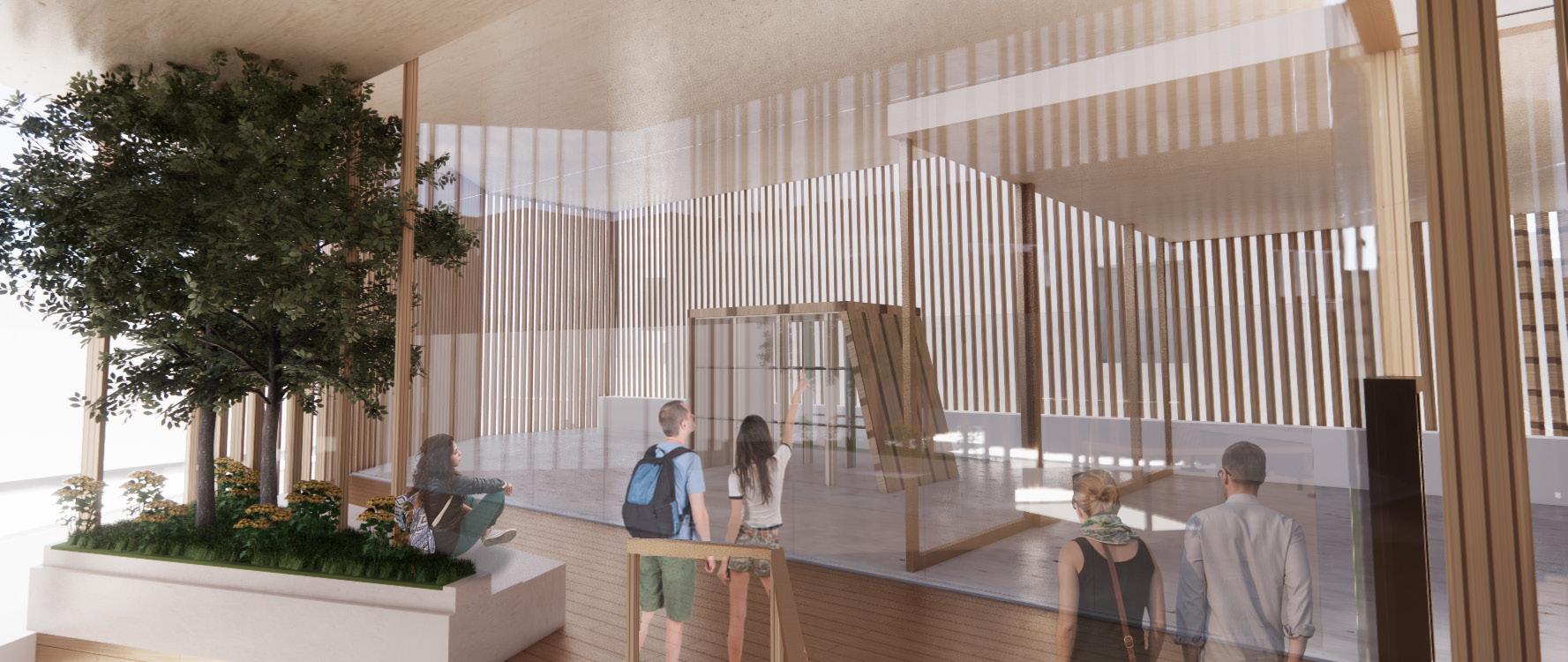The wooden slats enveloping the building both establishes a distinct boundary between public and private spaces within the incubator. While also regulating the natural light into the testing laboratory where controlled experiments on emergency housing units are conducted, necessitating specific environmental conditions.