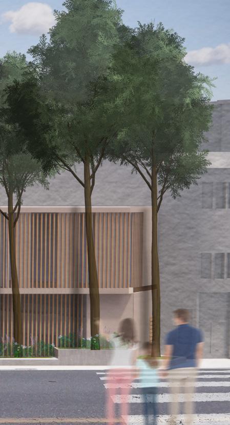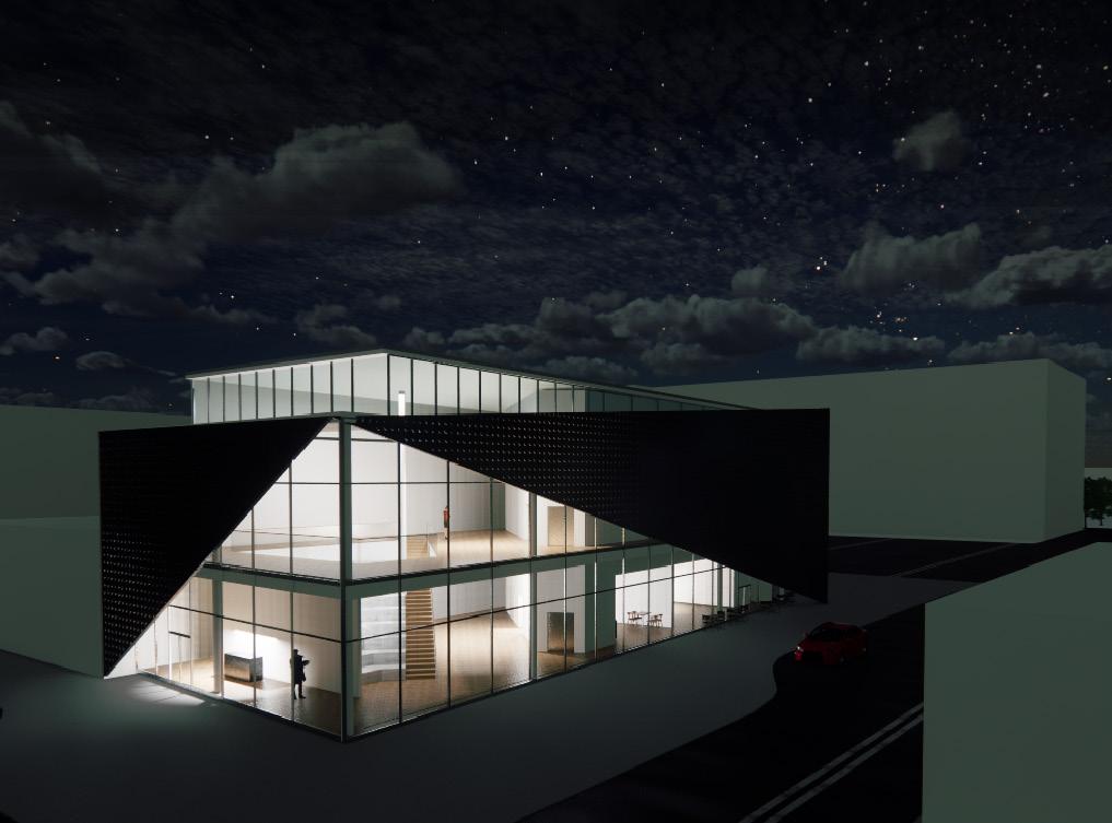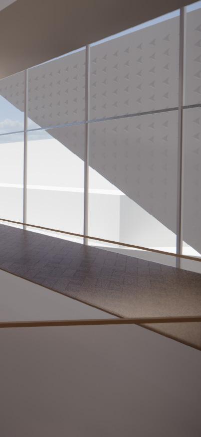 The dynamic transparency of the incubator’s facade fosters a balance between openness and privacy. While maintaining a visual connection with the public as a reliefbased facility, it also safeguards the essential lab and mock-up spaces where the inhabitants conduct private research, enabling their public endeavours.