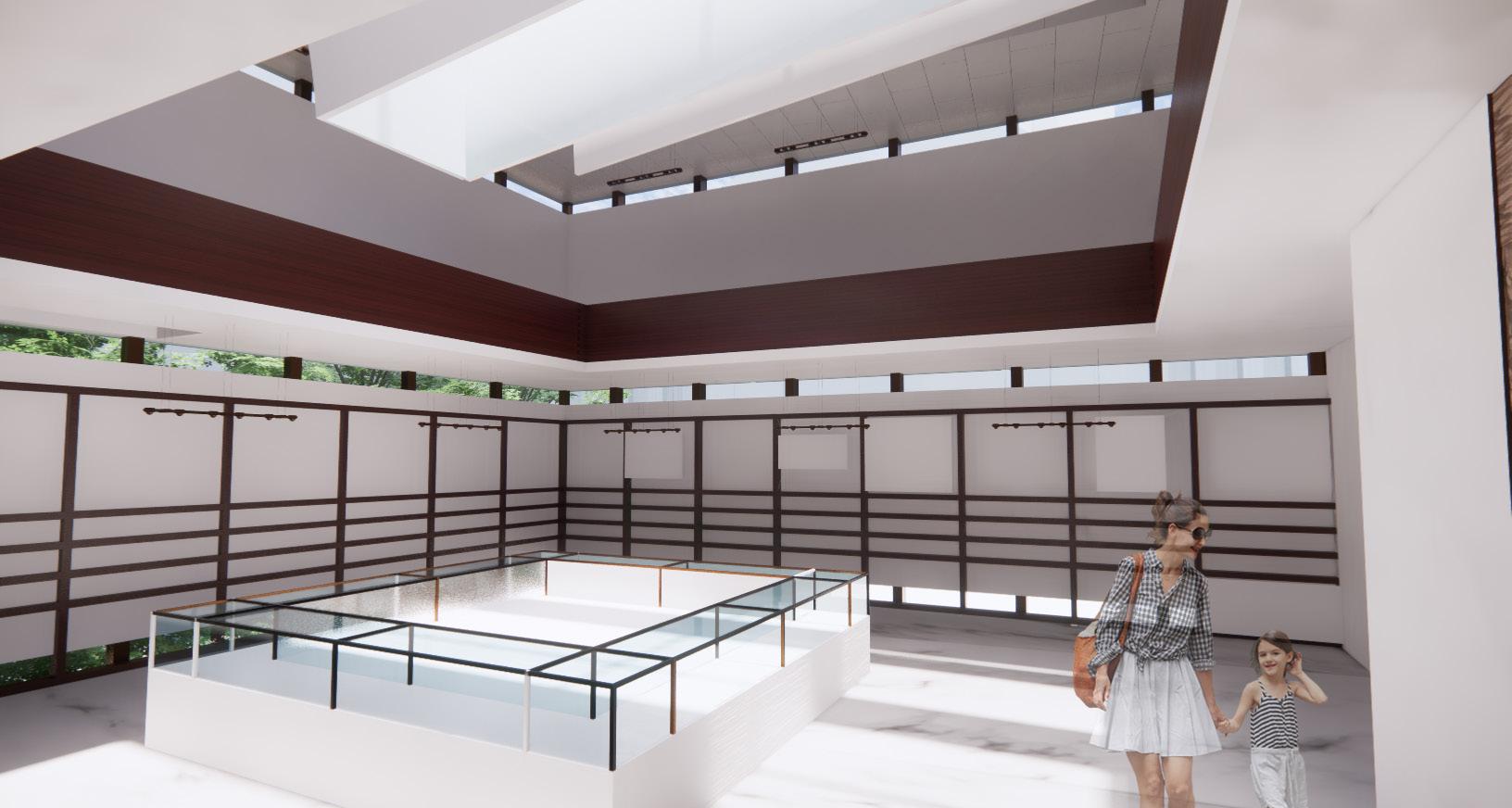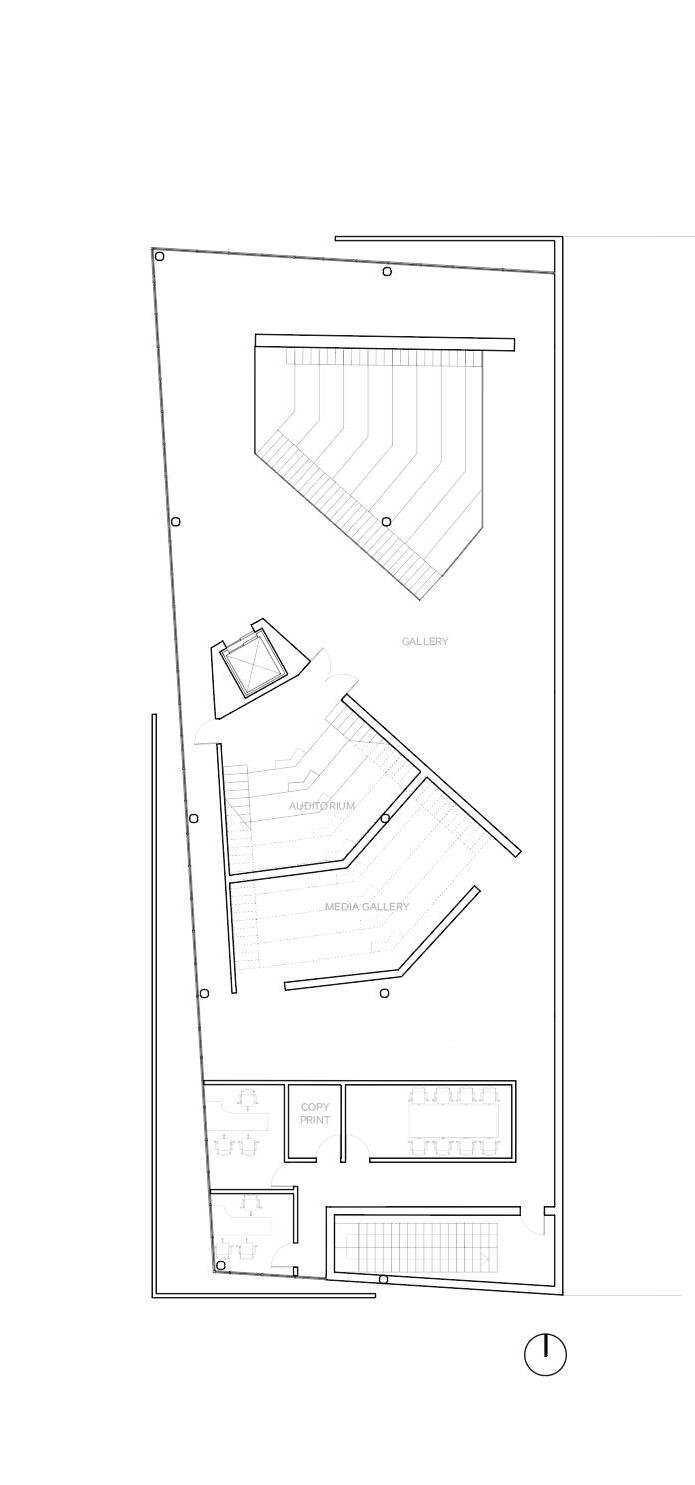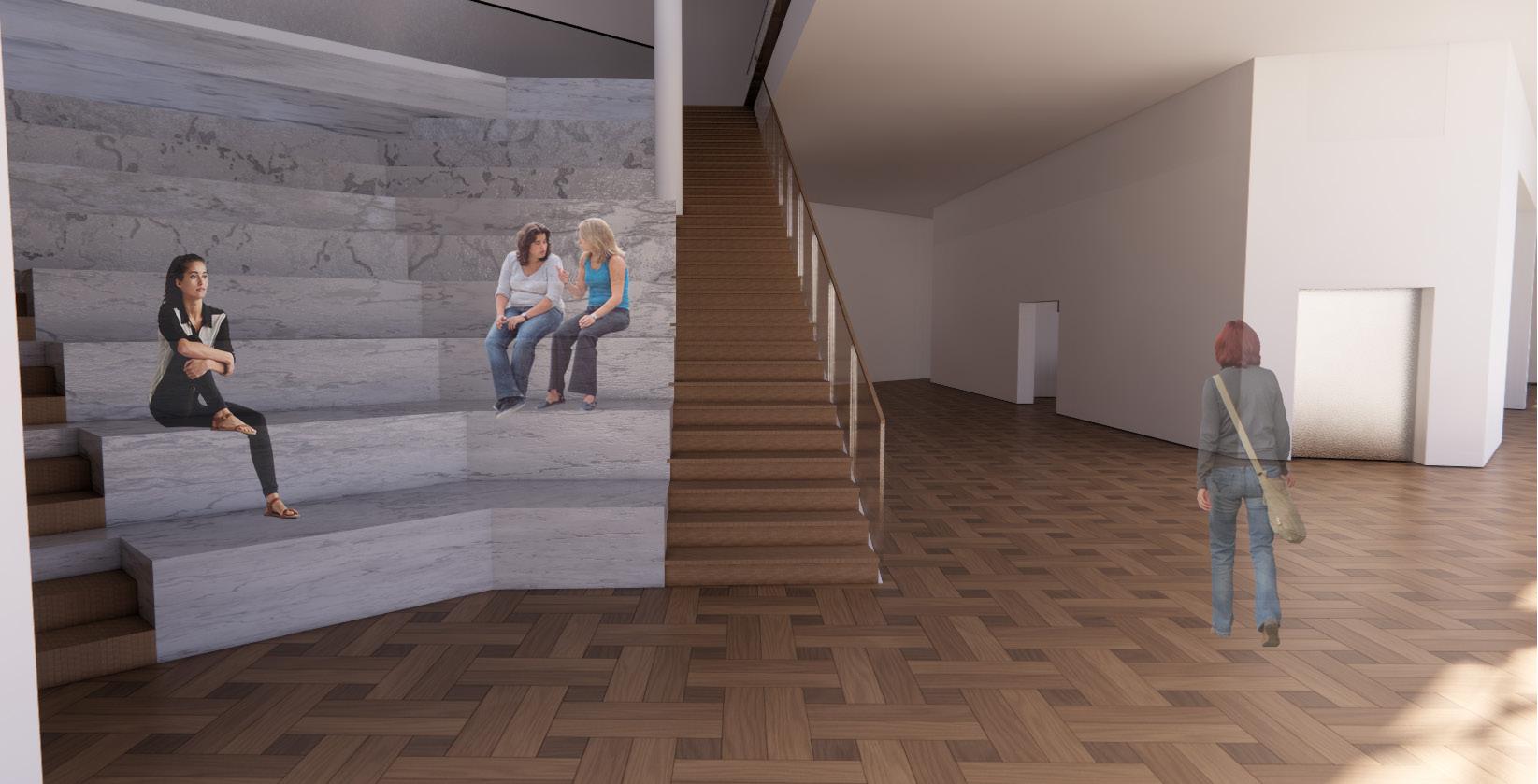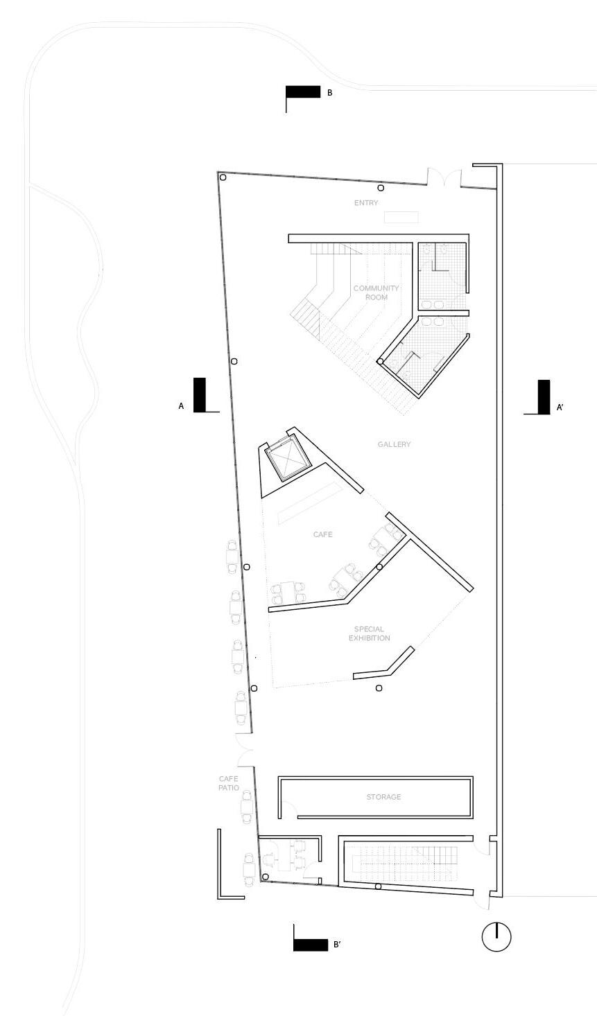 The community seating spaces act as control points within the building expanding and compressing space as one moves through the museum.