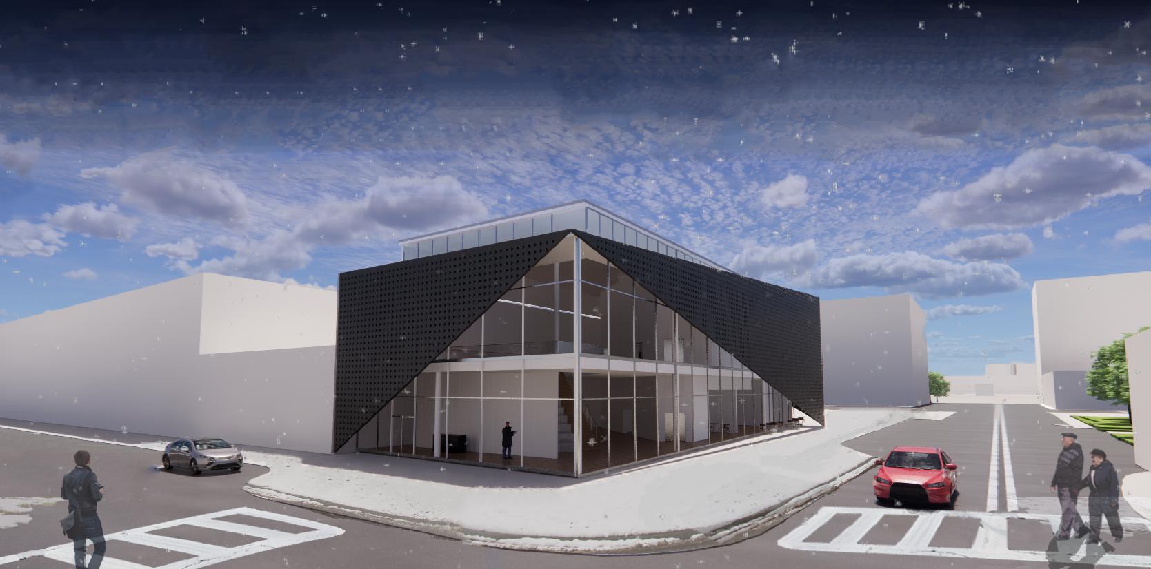 THE INITIAL FORM COMES FROM A SETTING IT DIRECTILY ALONG COLUMBUS STREET, AS THE MOST HIGH TRAFFIC STREET.