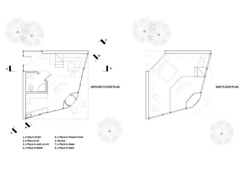 THIS DWELLING IS DESIGNED TO HOUSE VISITING SCHOLARS IN AN AMBIGUOUS ENVIRONMENT. IT BLENDS THE INSIDE WITH THE OUTSIDE IN ORDER TO CONNECT THE VISITOR WITH THEIR ENVIRONMENT.
