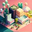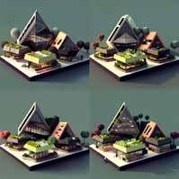 Pace, A. (2023). Prompt Version 04 , Midjourney image, [Prompt: “modern geometric architecture, food centre design with multiple smaller buildings including vertical gardens and roof gardens with outdoor communal spaces Italian theme”]