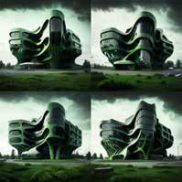 Very abstract and unrealistic initial visualization produced. Key elements taken out could be the geometry and glass facade which can be explored further alongside different prompts.