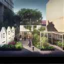 The final visualization from prompt 04 produced much better results than prompt 03. The space includes various green spaces with spaces for communal rooftop spaces. The image also included key design features which help create a stronger user engagement with clear views from the inside to the street and a clear inviting entry path into the design .
