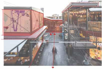 exposed shopping spaces which creates a point of interest within main space of the design, encouraging people to travel through the space enabling a strong connection between different users