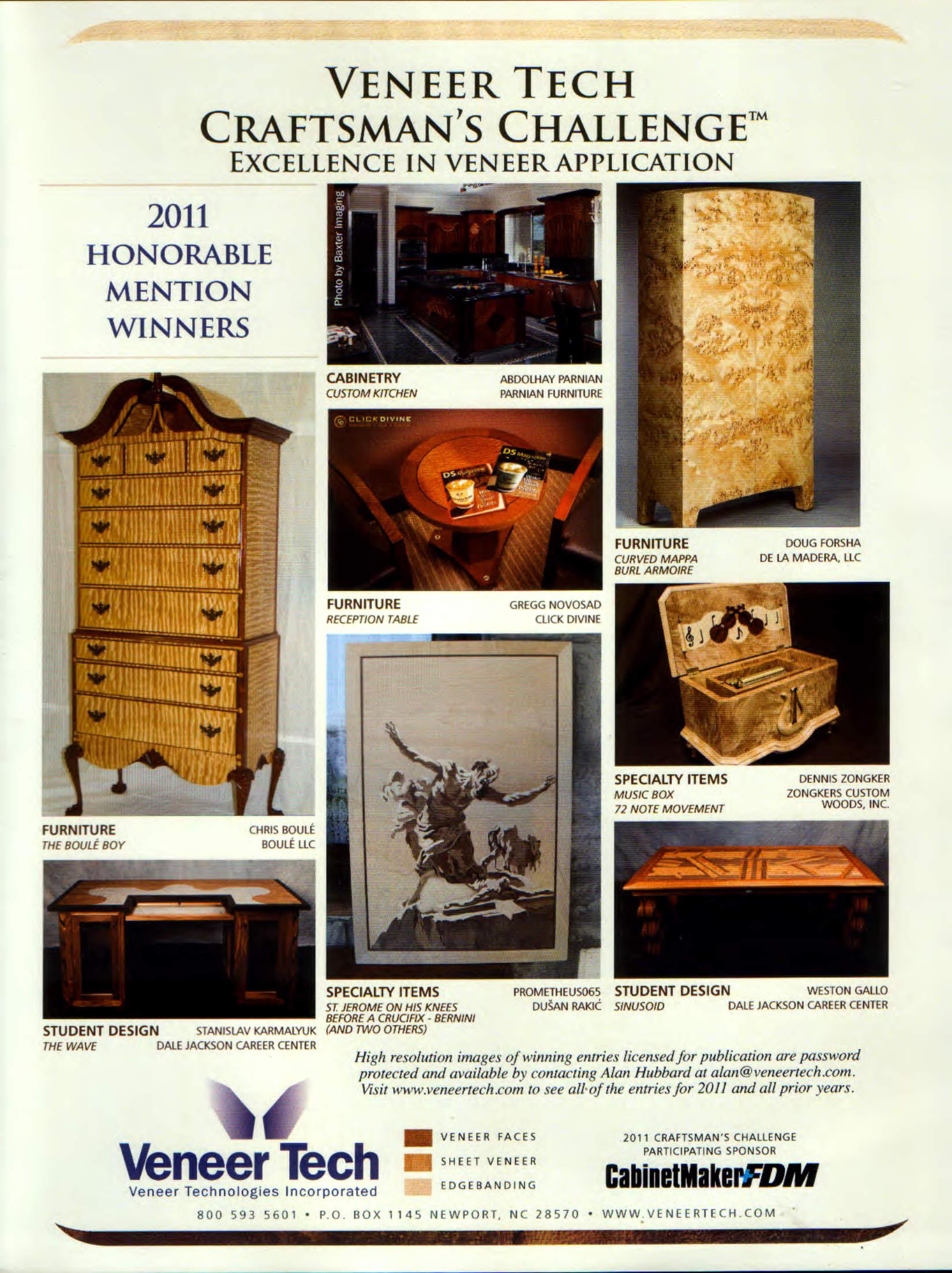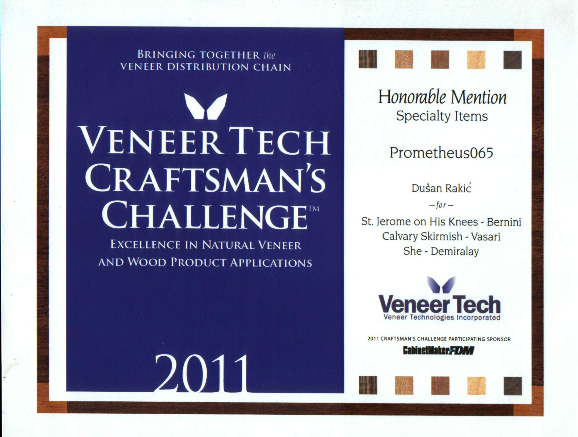 Pobedničkenominacije nakonkursuVeneerTechCraftsman's Challenge, ukategorijiSpecijalniproizvodi. DUŠANRAKIĆ