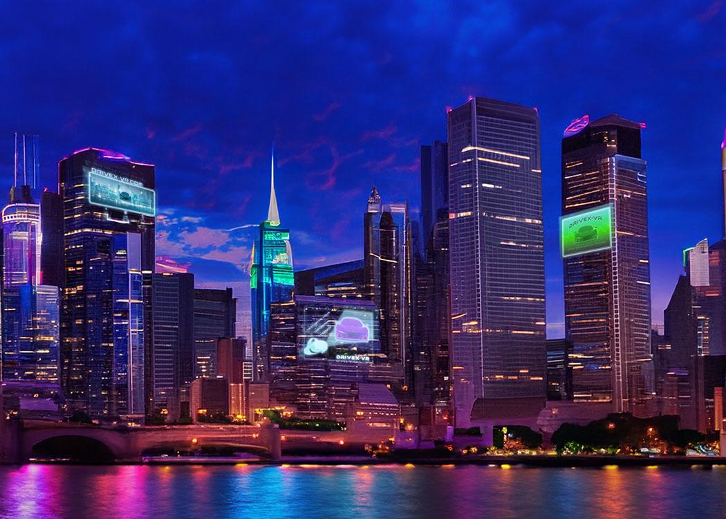 Billboards Drive X-VR Platforms: Subway & Building-Side Target Audience: Business Professionals Imagery Concept: Cars, Virtual Reality Inspiration: DC Movie Blue Beetle