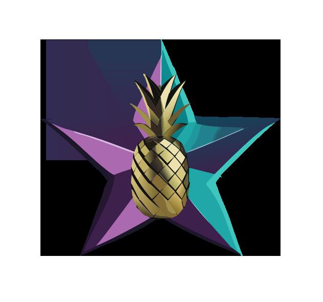 Logo elements: Star (magic) pineapple (fun)