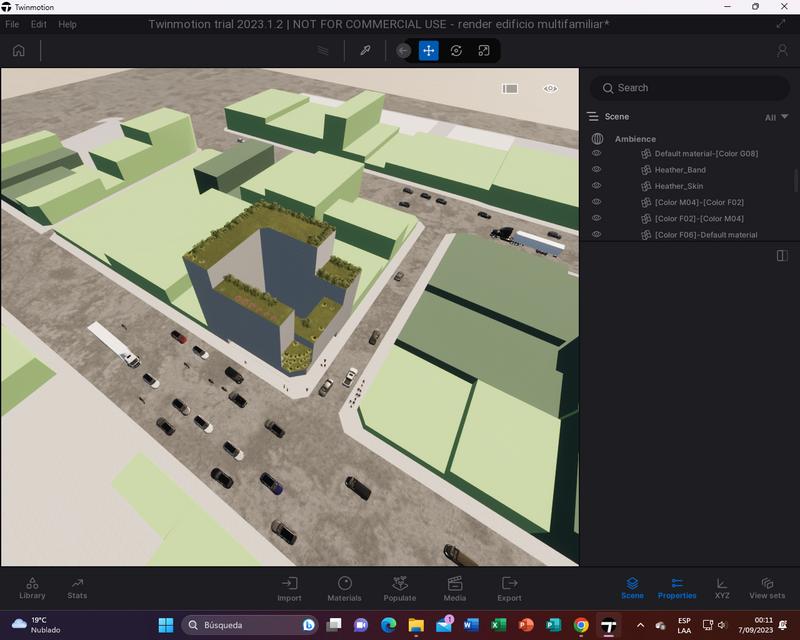 delimitar el terreno volumetría creada en base al terreno separar en 4 bloques que se separaran en más.