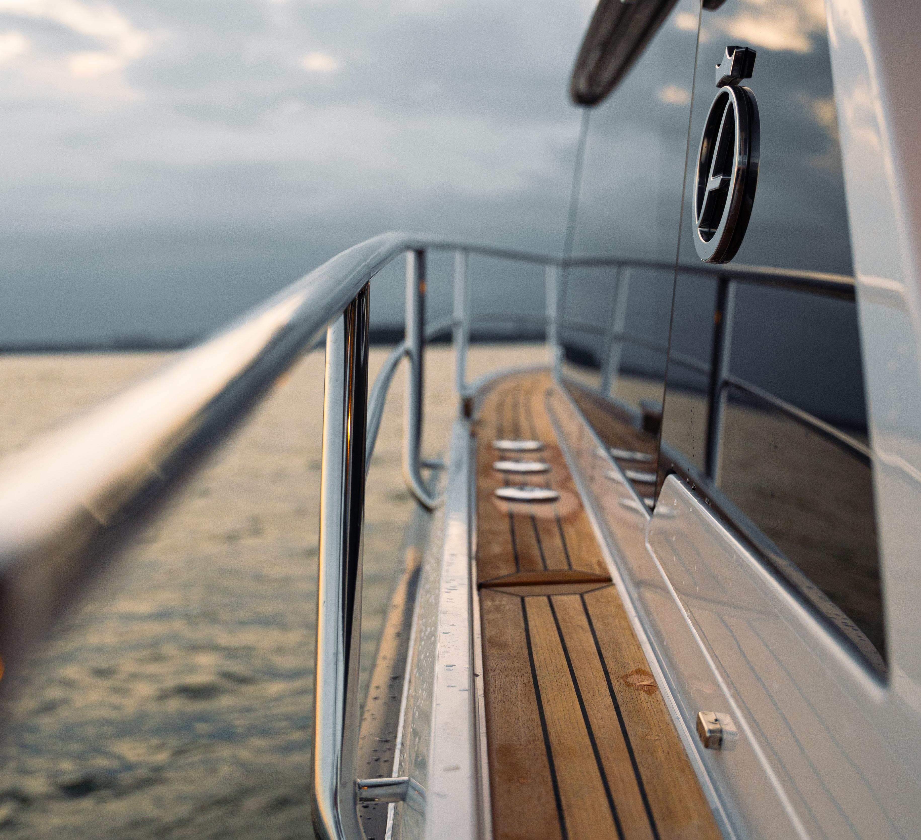 Sitting at the helm, you can opt for three Glass-Bridge 12’’ inch monitors where you will find all the information you need about the status of your boat. You can precisely navigate to your next destination, get readings on all the boat’s critical functions, control the entertainment system, and get the most out of your trip all by the touch of a screen at the control centre of your boat. The modern display and controls are at the forefront of navigational and informational maritime technology, where you will enjoy spending time in control of your boat.