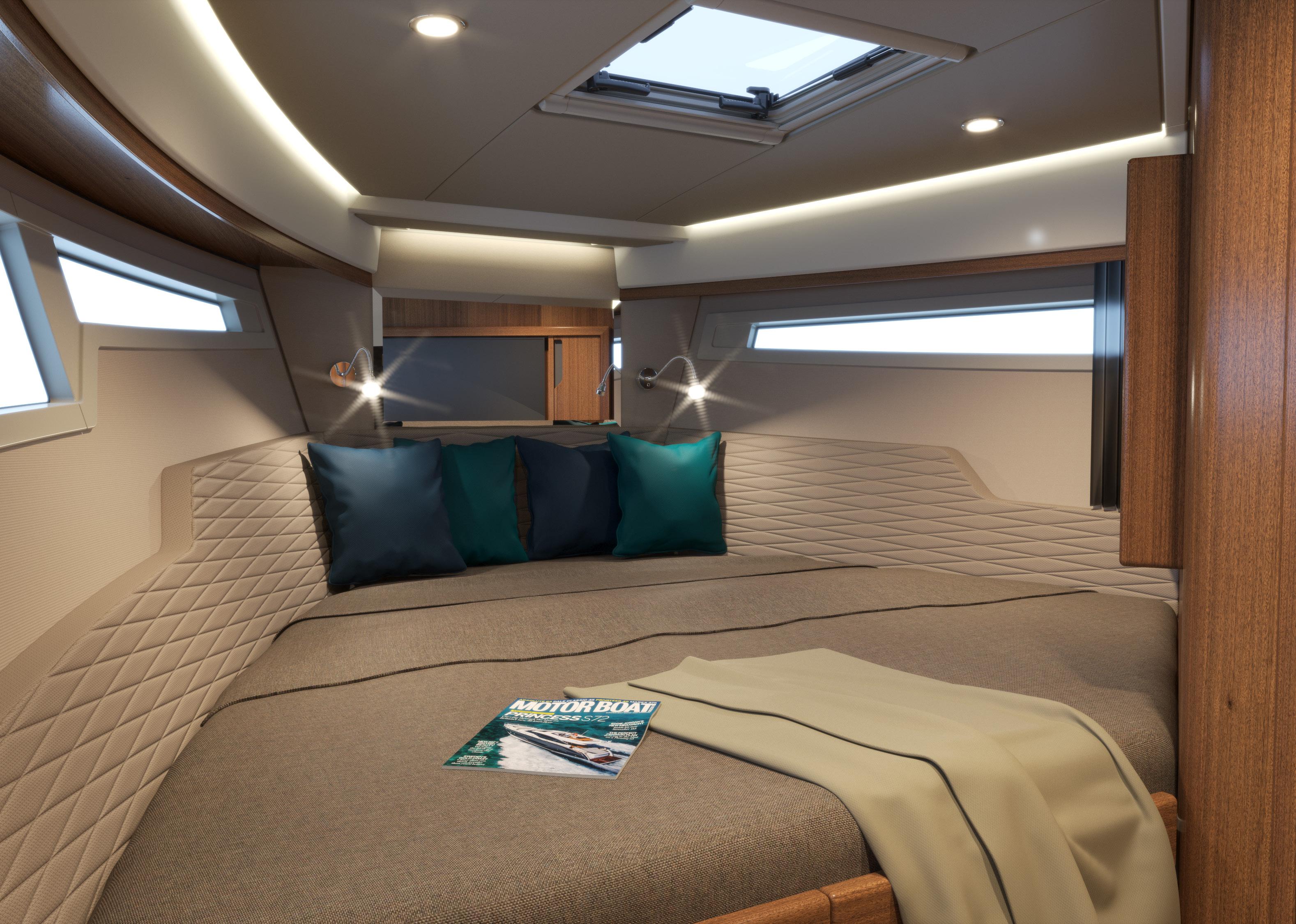 In each space down below, the natural light that flows into each compartment reminds you that the windows designed for the 300 HT not only contribute to the striking looks of this boat from the outside, but they serve a very important purpose in creating a bright and airy atmosphere inside.