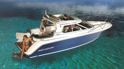 The Walkaround series includes small outboard and stationary boats. The boats received a spacious forward cabin, while the Aquador 25 WA model had even a small galley.