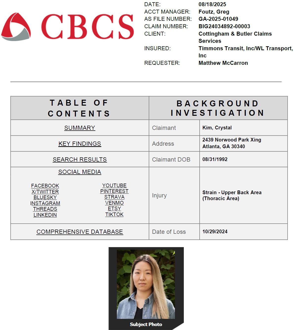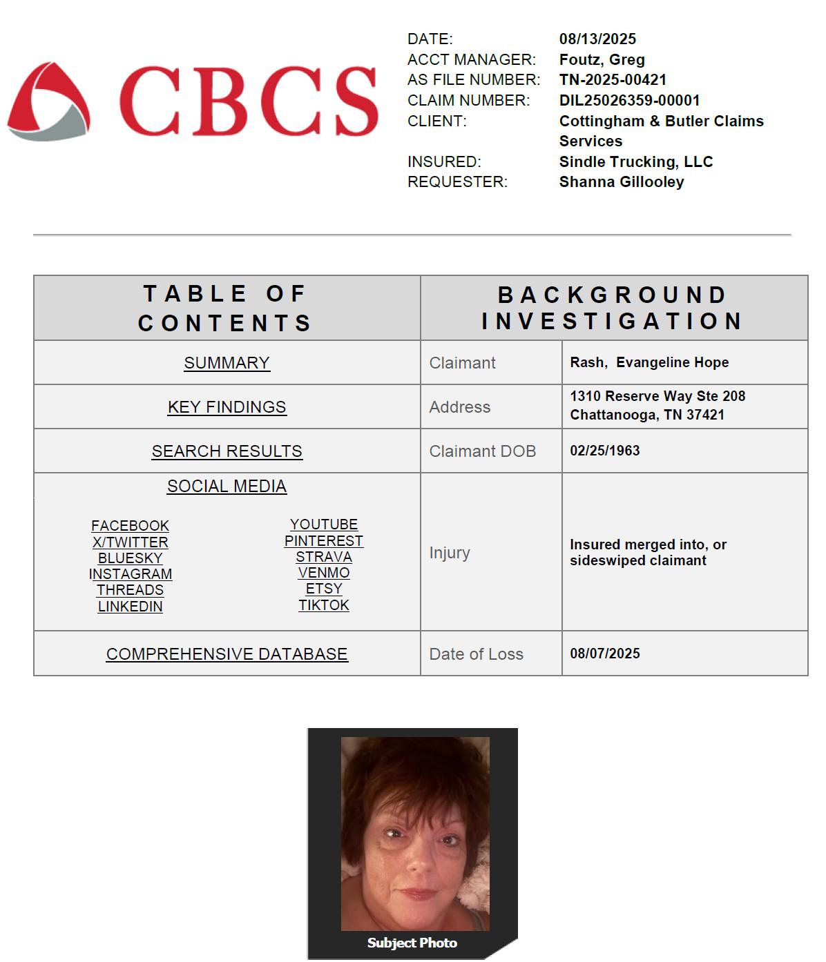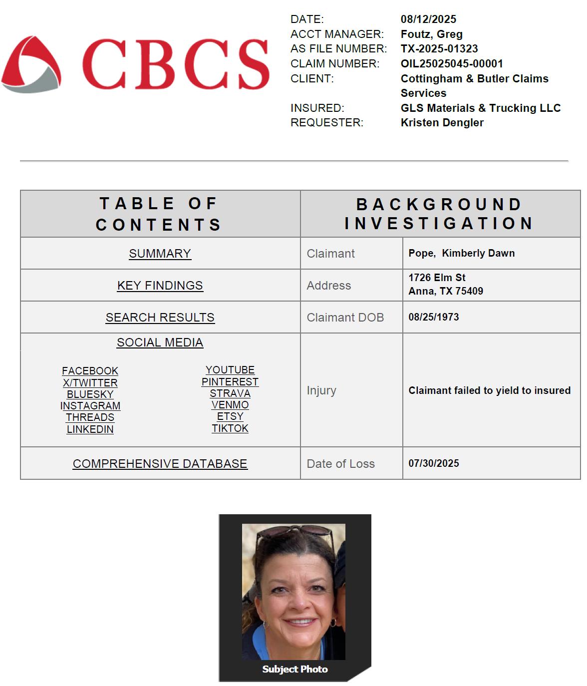 TRF25024134-00001 CLIENT: Cottingham & Butler Claims Services INSURED: D&M Carriers, LLC DBA Freymiller, Inc