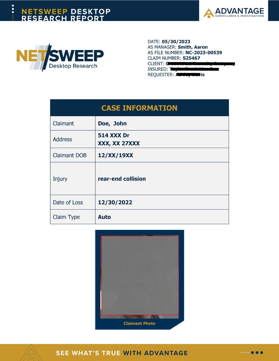 A comprehensive view of a claimant’s online presence. Our Research strategy includes: