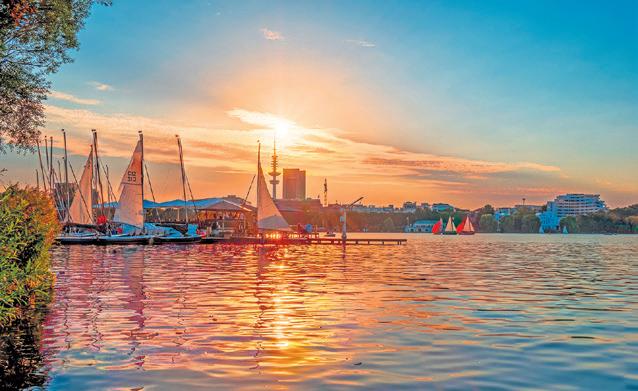 Opulent grasslands on the edge of the bank offer plenty of opportunities to be close to the water, right in the middle of the city. Just kicking back on a blanket or a deck chair, jogging “all the way round the Alster,” taking a walk, playing frisbee and boules — the options are endless for you to enjoy this splendid green oasis on land. During some winters, you will even be able to make your way across the lake to the other bank without getting your feet wet. Naturally, the Alster is surrounded by cafés and restaurants where you can enjoy a meal or drink with a splendid view of the water.