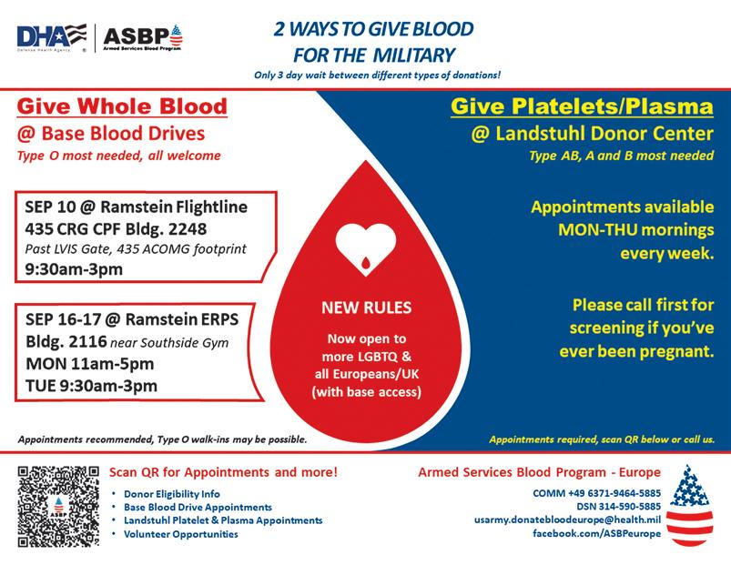 — but we rely on our volunteer staff to do so. Volunteering can mean as little as one day a week for a four-hour block. The RAO is open Mon 10 a.m. to 12 p.m., Tue/Wed/Thu from 10 a.m. to 3 p.m.; and closed for lunch from 12 p.m. to 1 p.m. We are located in Building 2118, Room 138 next to the VAT Office. Please visit our website at https://www.ramstein. af.mil/Resources/Retiree-Activities-Program/ for factsheets and recent RAO Newsletters on navigating being a retiree in Germany. Routine questions can be sent via email, but we ask that you make an appointment for specific subjects such as pre-death planning/surviving spouse issues and or Retiring in Germany. For appointments either call during office hours at 06371-47-5486, and/or send us an email to: 86aw.rao@us.af.mil.