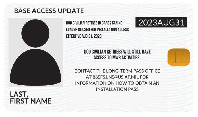 DOD civilian retirees will still have access to Morale, Welfare and Recreation services on Ramstein AB, but must contact the Long-Term Pass Office at 86sfs. lns@us.af.mil to obtain an installation pass.