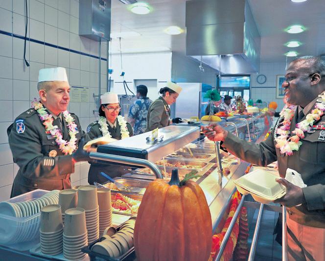 dawn to dusk. He worked at the commissary until 4 p.m. and then shifted to working as a dishwasher until closing. From learning Dutch, French and German, he continues to embody community and a hardworking spirit.