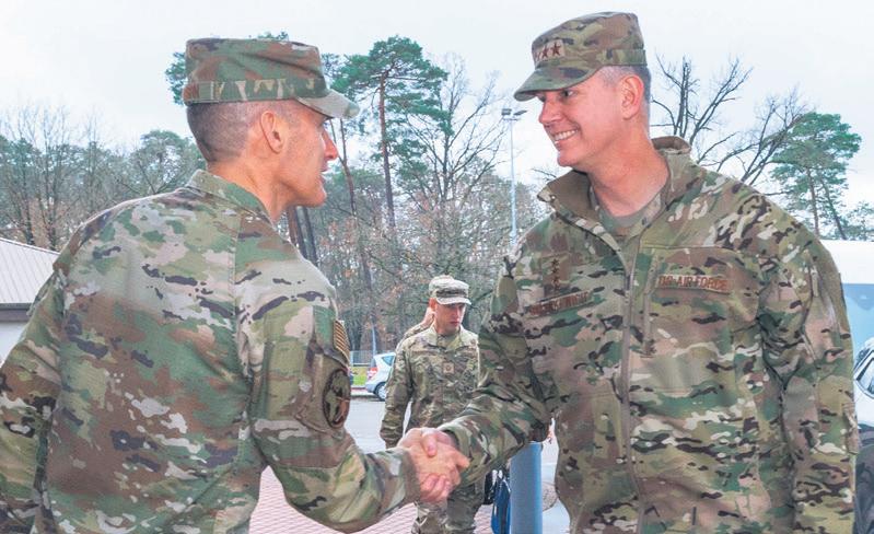 U.S. Air Force Gen. Alexus G. Grynkewich, U.S. European Command commander and NATO Supreme Allied Commander Europe, and U.S. Army Command Sgt. Maj. Thomas Holland, USEUCOM command senior enlisted leader, met with Airmen, Guardians and Allies at Ramstein Air Base, Nov. 25-26.
