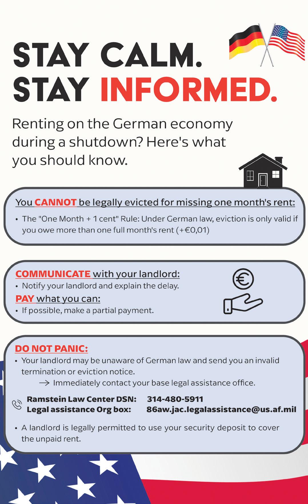 Due to the current U.S. government shutdown, service members may not receive a paycheck for the foreseeable future. As a result, members living in the Kaiserslautern Military Community may have difficulty paying rent. To help prepare, personnel are urged to be proactive and understand their key protections under German law.
