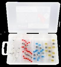 Juotostinalla varustettu kutistejatkoliitin on todella kätevä johtimien liittämiseen ja jatkamiseen nopeasti ja varmatoimisesti. Lajitelma sisältää 70 osaa.
