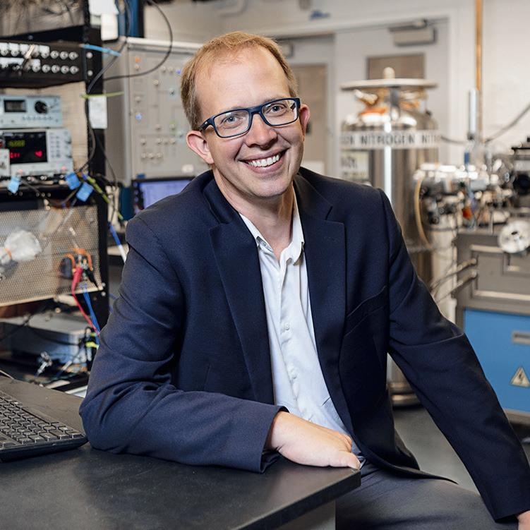 After years of trial and error, her team struck a breakthrough: nanosheets that resembled a dark “ink.” Tests showed the printed ink expelled a magnetic field, and its electrical resistance dropped to zero at low temperatures — indicators it was a superconductor. Applications could include electronic devices that bend and stretch, energyefficient data storage and qubits that will profoundly boost computing power. Schoop’s team published their findings in 2023 as convention-busting, proofof-concept research that will contribute to new discoveries, quantum materials and game-changing products.