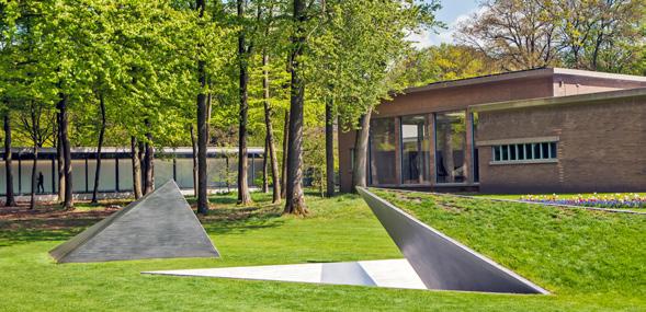 Het is meer dan 25 jaar geleden dat ik er voor het laatst het Kröller-Muller museum bezocht. Vooral de Jardin d’émail van Jean Dubuffet maakte een blij vende indruk. Net als de drukte, want we waren niet de enige schooklas op excursie en over de volwassen toeristen heen kijken was niet te doen. Een bezoek aan het Kröller-Muller bete kent automatisch ook een bezoek aan het park. Dat is geen straf! Wie de auto buiten laat staan en de fietspaddenstoelen volgt, komt wande lend of op een van de witte fietsen netjes op bestemming en ziet veel van het landschap.
