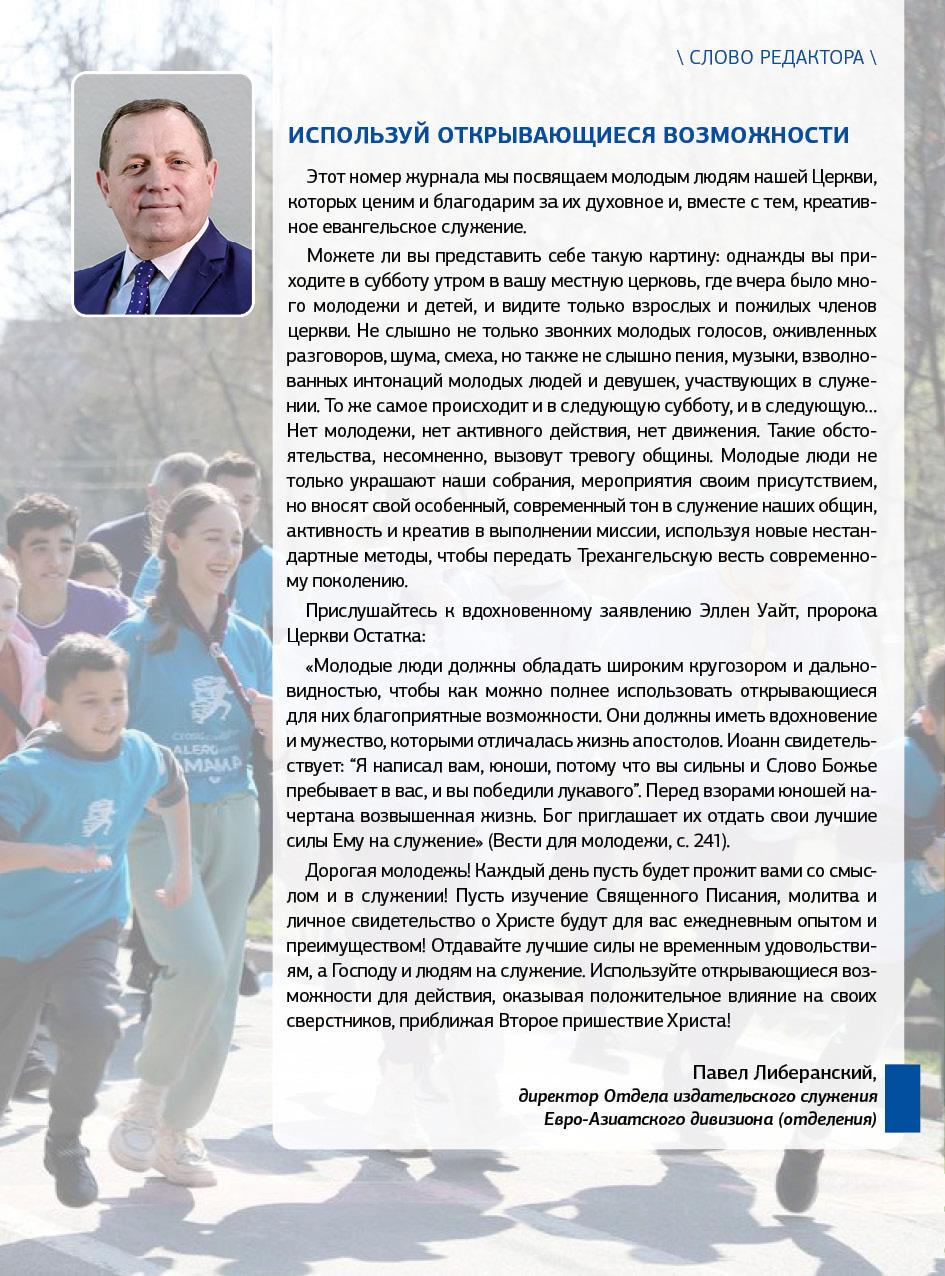 В своей книге «Советы родителям, учителям и учащимся» Эллен Уайт пишет: «Работа, которая ожидает наших членов церкви, заключается в том, чтобы проявить интерес к нашей молодежи» (с. 41).