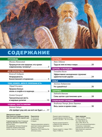 Адрес редакции: Россия, 107589, г. Москва, ул. Красноярская, 3 Тел.: (495) 786 81 96 Факс: (495) 786 81 55 E-mail: communication@ead-sda.ru Отпечатано в типографии издательства «Источник жизни» Евро-Азиатского дивизиона Церкви АСД.