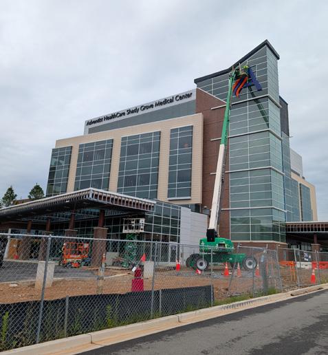 In July, the Adventist HealthCare “A” was placed atop Shady Grove Medical Center Tower, one of the last key pieces of the building’s exterior and the crowning touch.