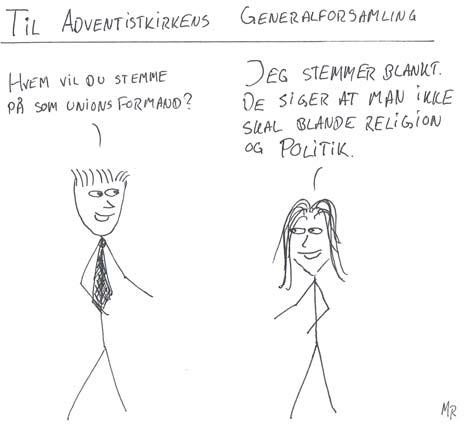 På et tidspunkt havde jeg også hørt, at en enkelt adventist havde været aktiv i forbindelse med sognerådsarbejde, og at en anden var viceborgmester i en nordjysk kommune. Mit senere ophold i USA gjorde mig også bevidst om, at flere af mine amerikanske trosfæller var ikke så lidt stolte af, at to kongresmedlemmer var adventister.