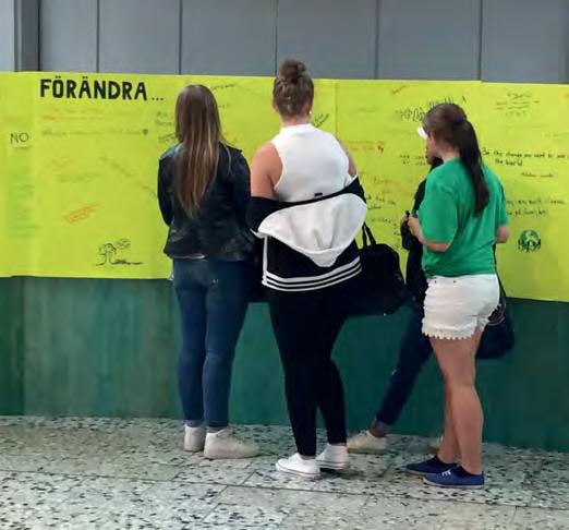 En gruppe gik på byens gågade og begyndte at tegne med kridt på asfalten om de ændringer, som er nødvendige i vores samfund. Mange mennesker stillede sig ved dem og blev involveret i at tegne og snakke og opmuntrede de unge mennesker til at fortsætte deres foretagende.