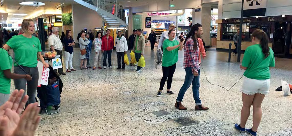 To grupper sluttede sig sammen og gik ind i shoppingcenteret, hvor bogstavelig talt tusinder mennesker går igennem hver eftermiddag. De udfordrede mennesker til at tage vare på deres helbred ved at hoppe i sjippetov og konkurrere og snakkede med dem om hvilke forandringer de havde brug for at skabe i deres liv. De, som gerne ville snakke, blev henvist til ”Forandringernes Væg”, som den anden gruppe havde sammensat, hvor de kunne skrive hvilke forandringer de så som nødvendige i deres egne liv og i byen. Muligheder for at lytte, for at være