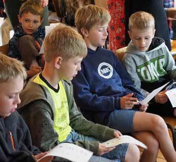 Sabbats formiddag mødte den resterende gruppe op, og i børnehøjde løste de opgaver, sang glade børnesange og lyttede til de befrielser, som Bibelen kan fortælle om.
