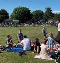 anden uge. De andre uger mødes vi udendørs sabbats eftermiddag. Indtil videre har vi mødtes til en hyggelig havefest med grill og bål; vi har været på gåtur i Dyrehaven; og vi har fløjet drager og hygget på Amager Strandpark. Næste uge skal vi indvie en have for en familie, der lige er flyttet. At mødes fysisk igen har gjort godt, og vi opdager, at tiden er gået, når vi ser, at der er en lille, der har lært at gå, og en lidt større, der har tabt en tand. Nogle har fået babyer, som vi ikke har kunnet følge med i udviklingen af, og så er der glædelige nyheder om flere babyer på vej, hvor vi endelig kan se de voksende maver.
