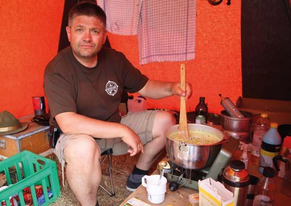 lum længere sydpå. De havde netop lukket, men åbnede igen, da de fi k øje på os. Vi bestilte en vegetarisk pizza. Den venlige mand fra Sri Lanka lavede to, og da vi ville betale, ville han ikke have noget for det. ”Tag nogle vand fra køleskabet, og er det ikke jer, der samler ind?“ – Oveni lagde han 100 kr. Glade og trætte efter 12 timer på farten vendte vi hjem.