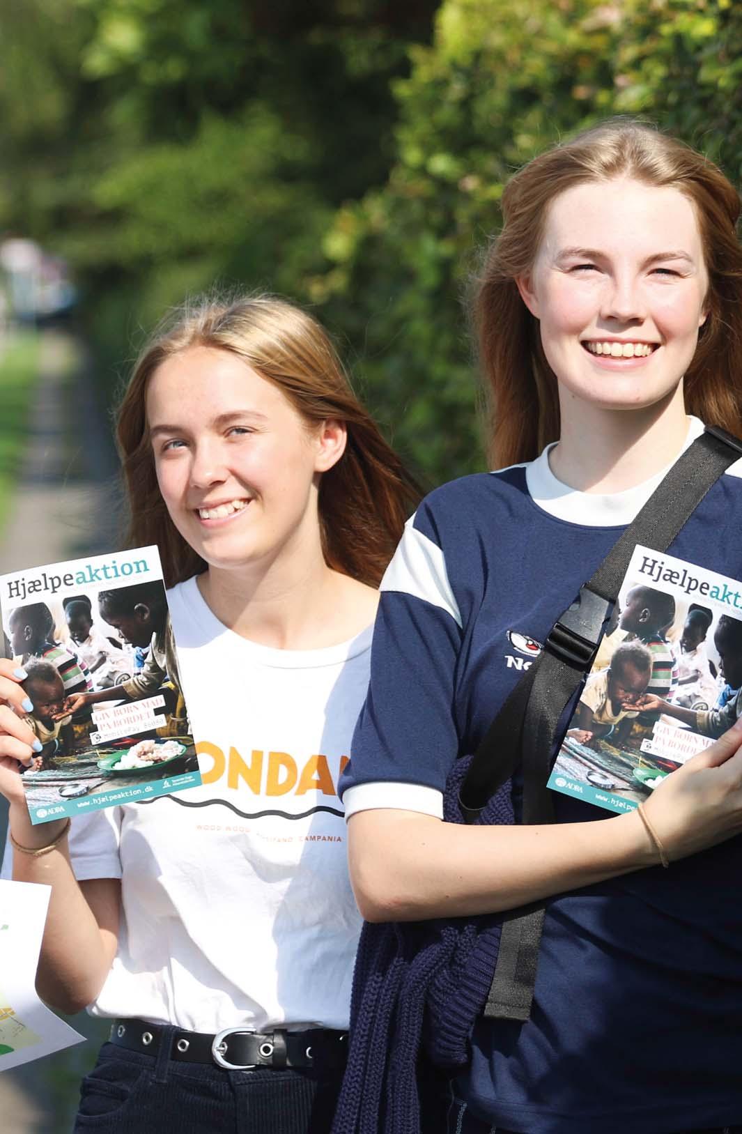Piger fra Vejlefjordskolens 2g.-klasse på vej ud til postkasserne med Hjælpeaktionsfolderen. Læs artiklen s. 18. Foto: Jakob Falk.