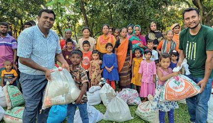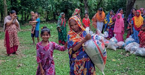 Adventistkirkens Genbrugsbutik i Ikast, Hap py Hand donerede 15.000 kr. og Dansk Børne fond gav 10.000 kr., hvilket samlet udgjorde 25.000 kr., som vores partnere i Bangladesh har brugt til at uddele nødhjælpspakker med fødevarer, så som ris, sukker, kartofler, olie og salt, samt vandrensningstabeletter.