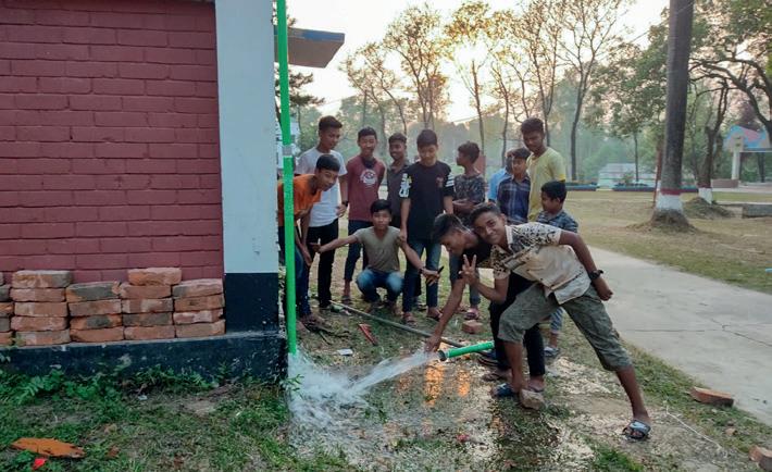 Dansk Børnefond har støttet et projekt, hvor en ny vandpumpe er blevet sat ned i den eksisterende brønd, så skolen igen kan pumpe vand op til skolens elever og personale. Samtidig er der blevet installeret nye filtreringssystemer på drengenes og pi gernes kollegier, så de også har fået adgang til ordentligt renset drikkevand. Under vores besøg i Bangladesh fik vi mulighed for at set den nye vandpumpe og rensningssystemerne. Skolen fortalte os, at de skifter filtre i rensningssystemerne hver uge, så der er garanteret rent vand hele tiden.