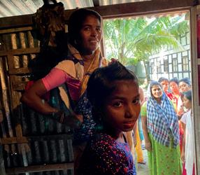 Hun skal hjem til Amgram. Hun glæder sig. Hun er meget stille, og smiler da vi nærmer os det sted, hun kender som sin egen bukselom me. Bilen standser, og vi går et kort stykke, før vi er i landsbyen. Mens vi kæmper med at holde balancen på de grene, der ligger på den mudrede sti, der udgør en slags gangbro, er Ajanta hurtig på fødderne på vej til hjemmet.