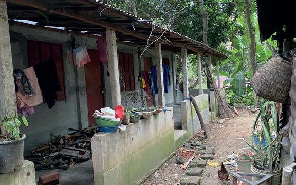 Det lille hjem ligger i et tæt befolket område, og privatliv findes ikke. Min beskrivelse af hjemmet er, at det er et ”rækkehus”, fordi fa milien lejer en sektion af et aflangt hus. Der er ikke adgang til vand ved boligen.