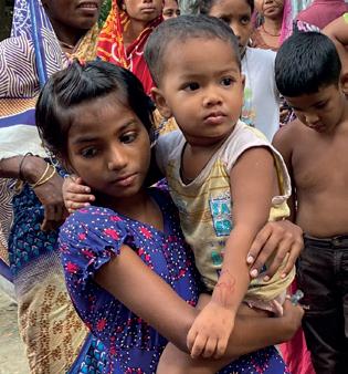 fra uddelingen af hjælpepakker til de oversvømmede områder: ”De oversvømmelsespåvirkede folk er desperat sultne efter mad. Lige så snart en båd kommer med nødhjælpspak ker, så stimler de sammen og er klar til at tage imod maden”. Nogle steder har oversvømmelsen taget alt fra folk; de har mistet deres hjem, deres husdyr og deres konserverede mad. På et tidspunkt løb uddelingen af hjæl pepakker ud af kontrol, da flere børn og unge i desperation hoppede op på båden for at få fat i pakkerne. Michael og de frivillige følte sig presset, og de var nødt til at skynde sig væk fra området før tingene gik galt.
