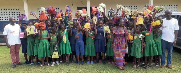 En søsterafdeling af Danish Children Fund i Sierra Leone producerer disse små stofposer med materiale til pigerne. De hjælper samtidig nogle skrøbelige mødre og unge piger til at få en indkomst, når de sidder ved symaskinerne og laver disse pakker. Da jeg besøgte Sierra Leone for et par år siden, fik jeg anledning til at tale med et par af de kvinder, som var mødre til vores sponsorerede børn. De levede delvist på gaden, og var derfor glade for at få hjælp til at få en fast indkomst.