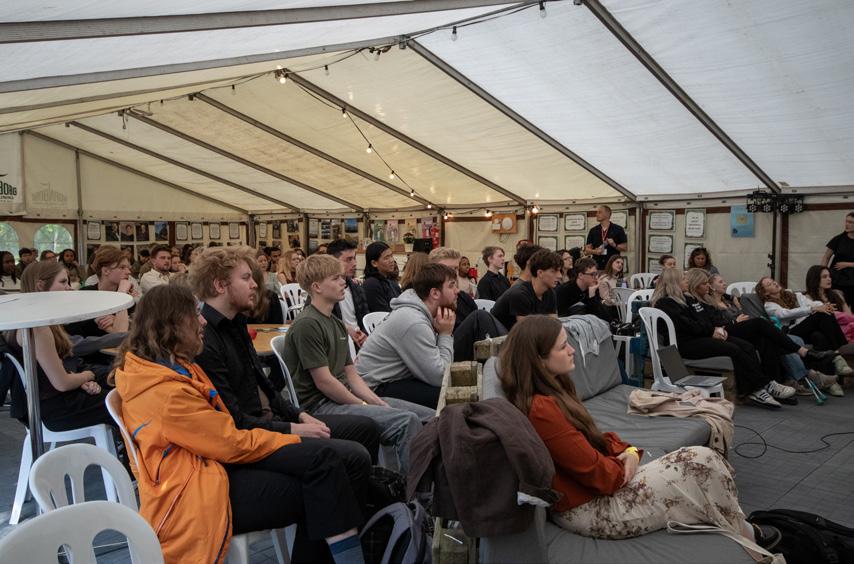 SOLEN SKINNEDE FRA en skyfri himmel sabbatten den 15. marts, da Global Youth Day (GYD) blev fejret på gågaden i Odense. Men vinden var kold, så der var god efterspørgsel fra de forbipasserende efter de varme drikke, der blev tilbudt af entusiastiske SABUS-folk og hjælpere. Der var opstillet en pavillon, cafestole og -borde, så folk kunne sidde og varme sig og spille et brætspil eller strikke lidt. Var man lækkersulten, kunne standen byde på muffins og scones, og på hver pose med bagværk, der blev uddelt, var der vedhæftet en lille hilsen, der fortalte om GYD. Der var også et mindre udbud af brugt tøj, som blev uddelt gratis.