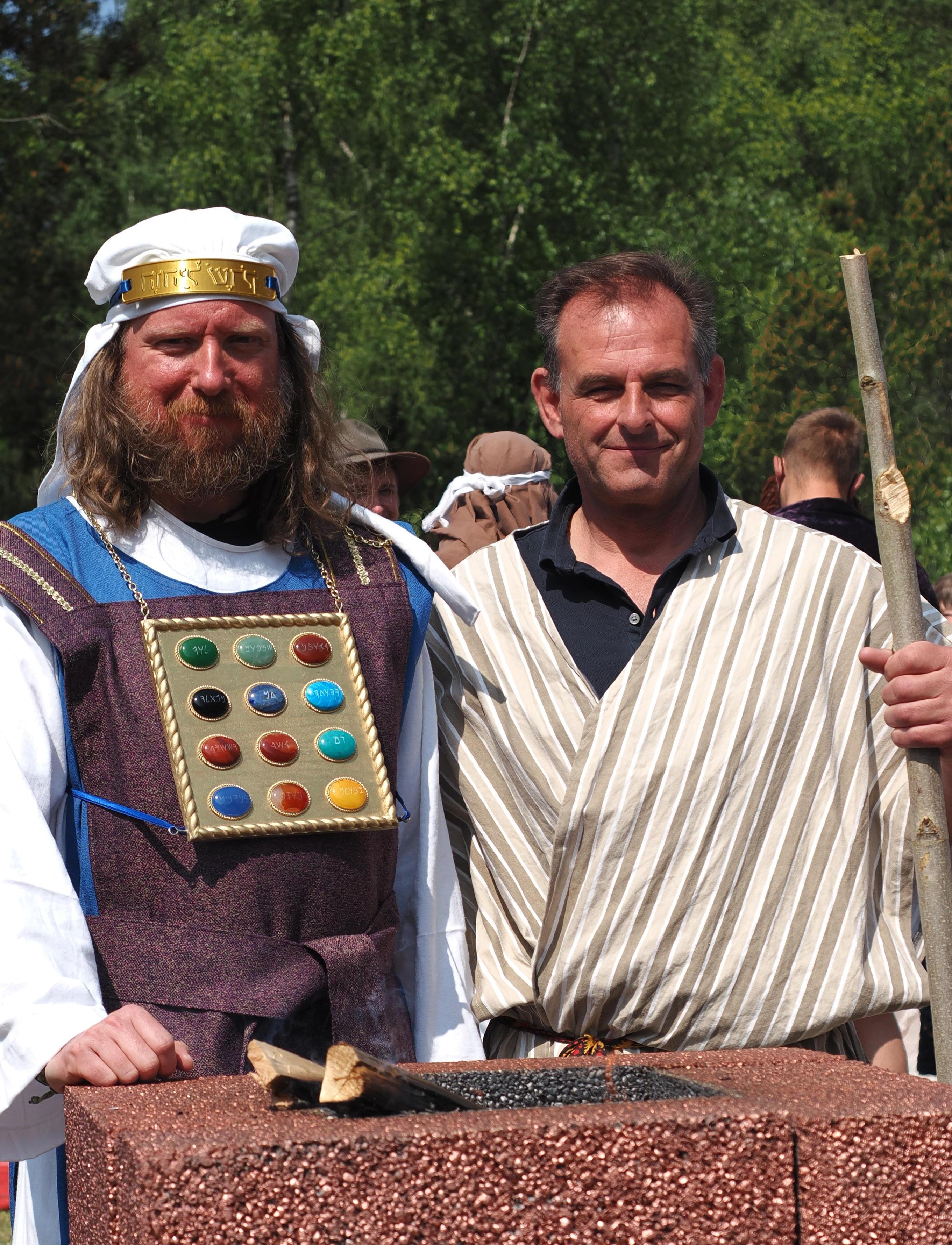 Ypperstepræsten står klar ved alteret til den store forsoningsdag om sabbatten til børnenes årsmøde på Himmerlandsgården.