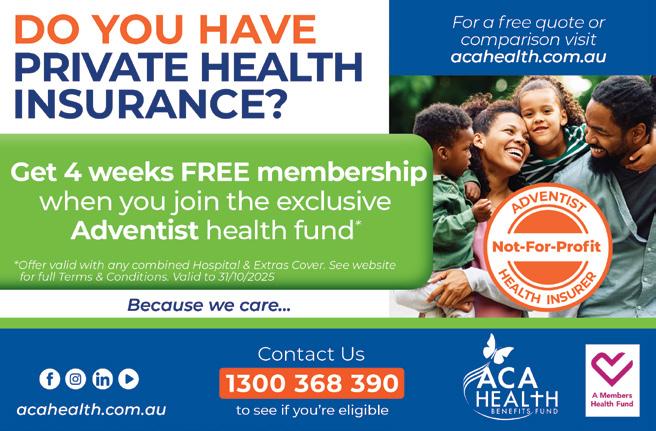 NOTE: Neither the editor, Adventist Media, nor the Seventh-day Adventist Church is responsible for the quality of goods or services advertised. Publication does not indicate endorsement of a product or service. Classified advertisements in Adventist Record are available to Seventh-day Adventist members, churches and institutions only. All advertisements, appreciation, anniversary, wedding and obituary notices may be submitted via <ads@record.net.au> or online at <record.adventistchurch. com>. Notices will not be reprinted unless there is an error of fact caused by Record staff.