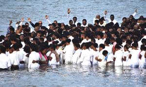the biblically mandated ceremony. A couple hours later 48 pastors were baptizing candidates. By 11:00 a.m. the ceremony was finished.