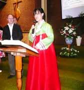 On Sabbath, 11 April the multilanguage Bible came to Lakeside Church. This event was organised by Moira Irvine, one of the church elders. During the church service, 15 different people read Revelation 14:6. Some read in their native tongue while others read in a language they had learnt. The text was read in the following languages — English, Arabic, Polish, French, Fijian, Portugese, Swedish, Dutch, Spanish, New Guinea Pidgin, Solomon Island Pidgin, Albanian, German, Finnish and Korean. Jayoung (Janet) Kim dressed in the Korean national costume to read directly from the multi-language