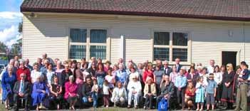 The celebration was marked with deep sorrow as two church Elders, Harry Wolfenden and Fred Hall, had both passed away in the preceding week. Harry had been a foundation member of the church and had been looking forward to this special occasion. His wife Daphne attended the afternoon service and cut the Anniversary cake with other long standing members William (Rollo) Wallace and Neville Mackaway.